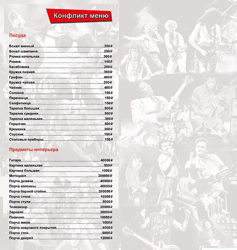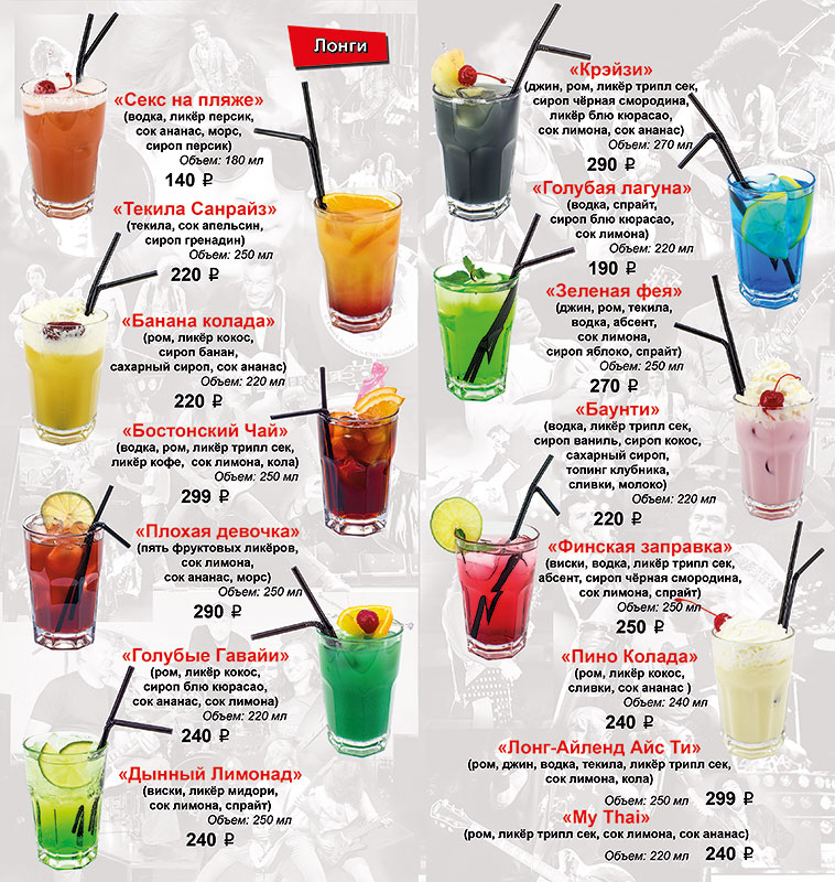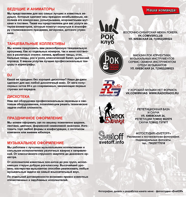 Пример издания "барной карты" для бара "ROCK`N`ROLL"